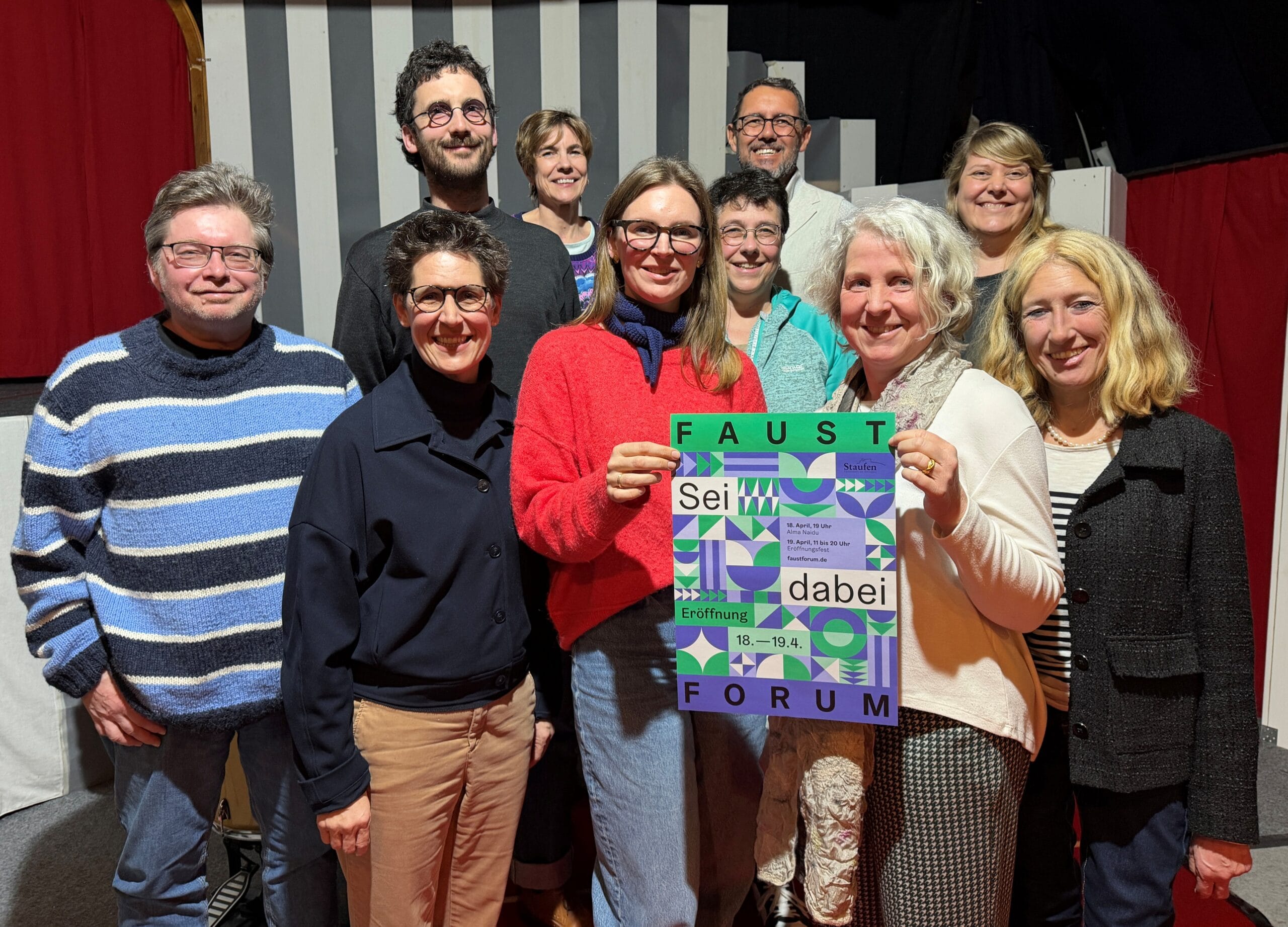 Das ehrenamtliche Team FaustForum hat sich erstmals im März 2026 zusammengefunden um Willkommen zu heissen und mit Zuverlässigkeit und Freude am Zusammenwirken die Veranstaltungen für das Publikum unvergesslich zu machen. Wenn Sie interessiert sind an Austausch und Teamgeist, und gerne Ihr gemeinnütziges Engagement einbringen wollen, heißen wir Sie herzlich willkommen im Team FaustForum.